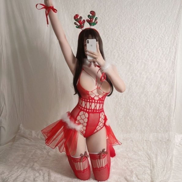 كريسماس لانجري مع التاج و الدلاغات